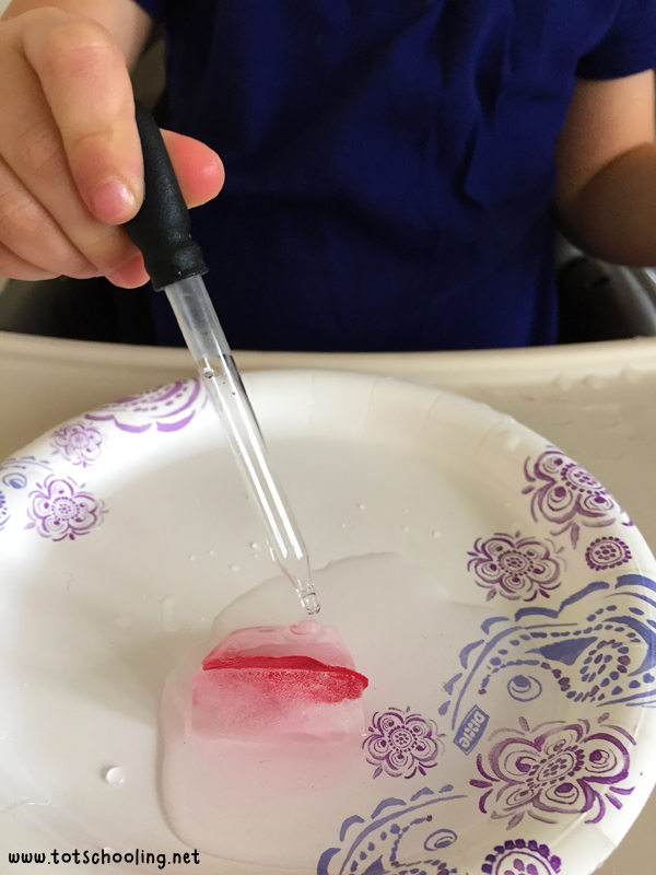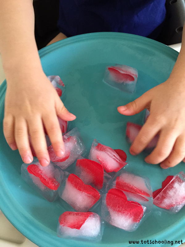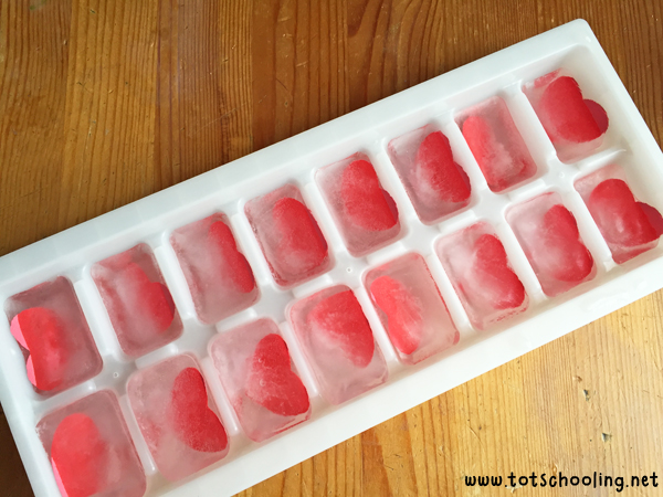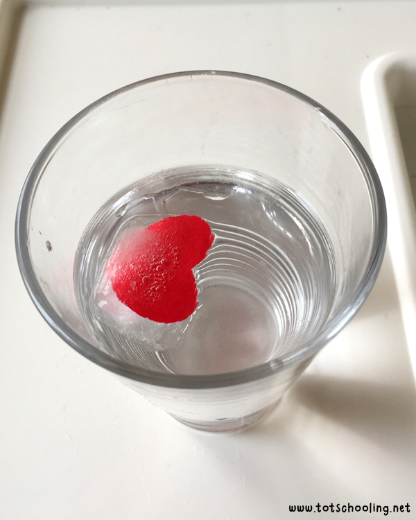 1- Putting one frozen heart in a glass of water and letting it sit there. (You can even have one glass of warm water and one with cold water and see which one melts faster)