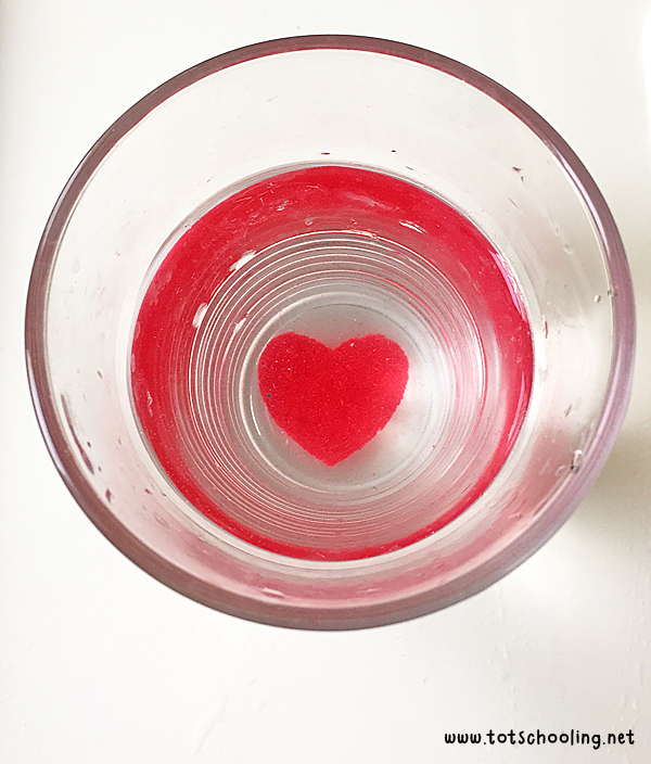 The heart that was floating in the glass of water finally thawed and we realized it wasn't floating anymore. It sank to the bottom! Apparently, paper hearts do not float.